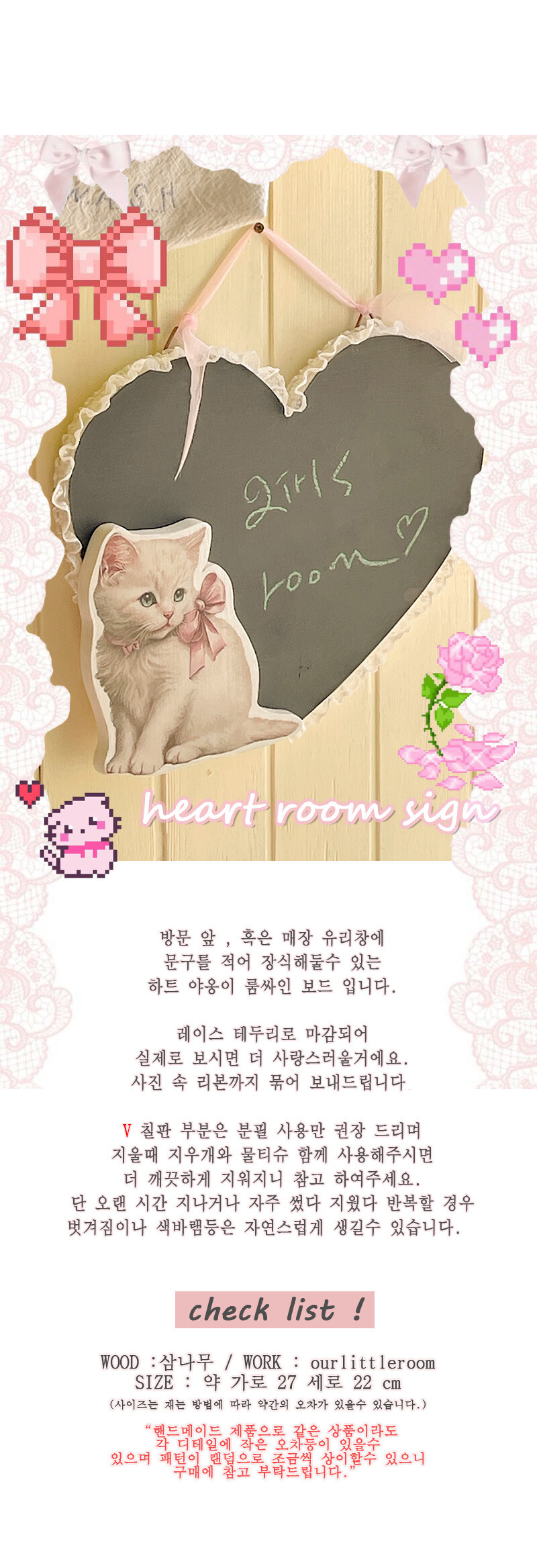 [바로 배송] ourlittleroom heart room sign