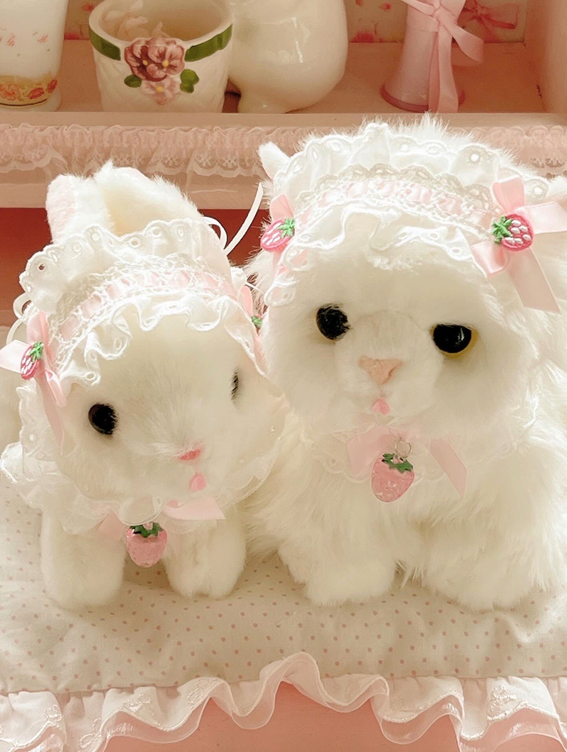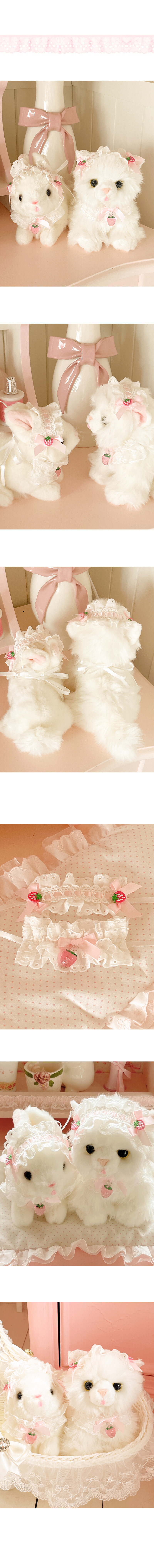 하얗고 뽀얀 혀 빼꼼 아기 고양이와 아기 토끼 인형 입니다.